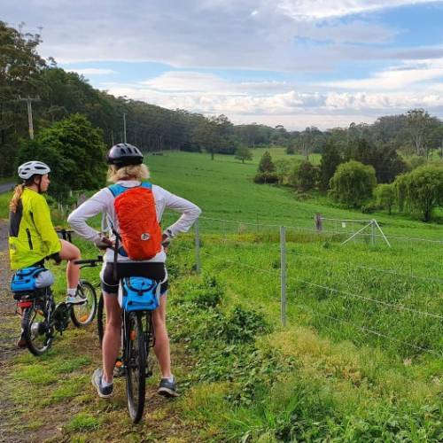 You'll encounter interesting cyclists on the Murray to the Mountains rail trail |  <i>Bruce Baker</i> Mother and Daughter reach Huskisson on the South Coast Self Guided Cycle |  <i>Gesine Cheung</i> Cycling along the bike path |  <i>Bruce Baker</i>